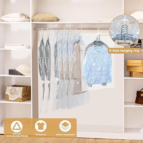 Sacchetti Sottovuoto Vestiti da Appendere, 110x70cm Sacchi Sottovuoto Piumoni da 6, Vacuum Storage Bags Salvaspazio per Vestiti, Organizer per Armadio, Sacchetti Vestitii Trasparente e Riutilizzabile