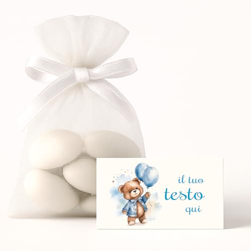60 Bigliettini Bomboniere Battesimo Personalizzati (Teddy Boy)
