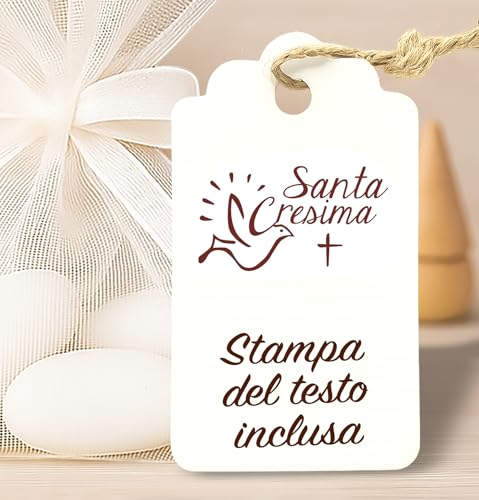 Mr Pubblicità – n. 60 Tag Bigliettini Bomboniera Personalizzati con Stampa inclusa – Etichette per Cresima – Cartellini tag per bomboniere personalizzabili -…