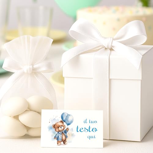 Mr Pubblicità - 60 Bigliettini Bomboniere Battesimo Personalizzati | Biglietti Primo Compleanno Nascita Bimbo Bimba | Etichette Bomboniera | Biglietti bomboniera Personalizzati (Teddy Boy)