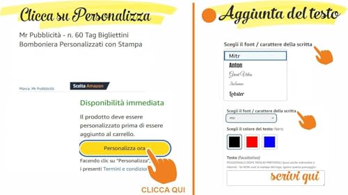 Mr Pubblicità – n. 60 Tag Bigliettini Bomboniera Personalizzati con Stampa inclusa – Etichette per Matrimonio, Sposi – Cartellini tag per bomboniere…