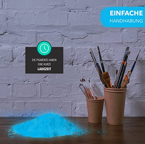 Pigmento additivo polvere ULTRA fluorescente – UV luminescente – si illumina al buio – per resine epossidiche – per creazioni artistiche, fai-da-te e bricolage 20g (Azzurro Fluo)