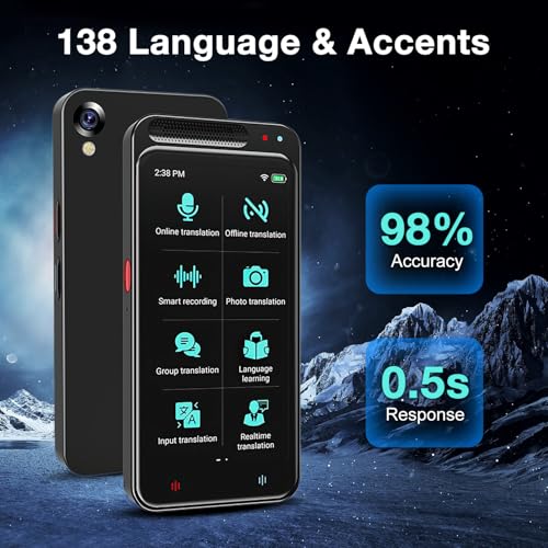 Traduttore con uscita vocale, traduttore AI touchscreen da 2,4 pollici, traduzione bidirezionale in tempo reale di 138 lingue, traduzione offline®istrazione&foto per l’apprendimento di viaggi d’aff